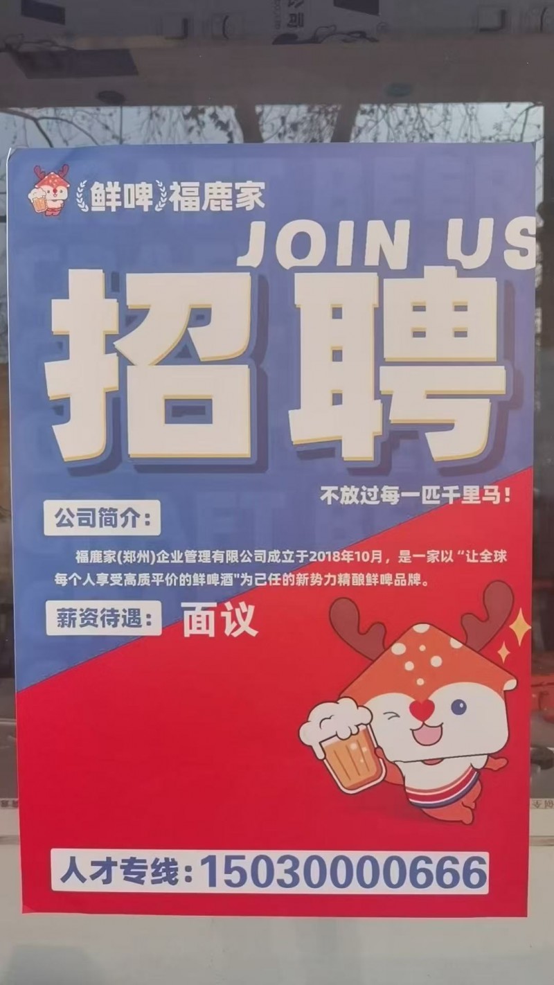 鲜啤福鹿家(南开街)招聘! 长期!长期!短期勿扰 有意者联系